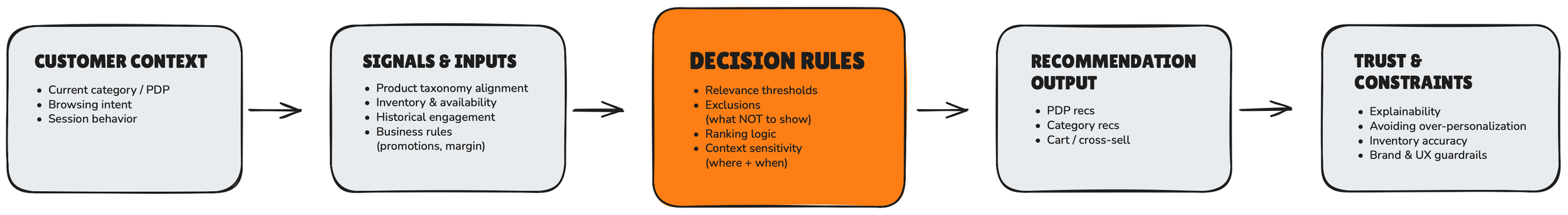 This work focused on designing a governed recommendation system that balanced personalization, business performance, and customer trust across digital commerce surfaces.